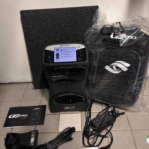 Ion-Drive batteripaket med laddare för LiFePO-batterier. Paketet innehåller batterienhet, laddare och kablage enligt bilder. Avsett för drift av utrustning som kräver extern batteriförsörjning. Märkt med Ion-Drive of Sweden och Powered by LiFePO. Närmare tekniska specifikationer och kapacitet framgår inte av bilderna och bör kontrolleras på produkten eller hos tillverkaren.