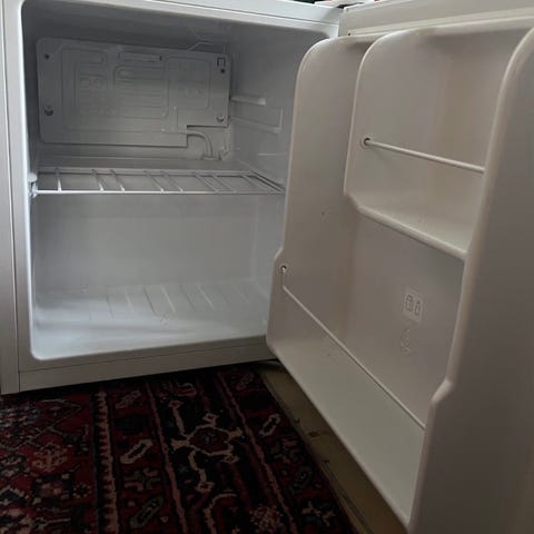 Heineken kylskåp i bänkkylsmodell med glasdörr. Skåpet är vitt med reklamdekor på sidor och ovansida. Invändigt finns hyllplan för förvaring av dryck eller mindre livsmedel. Passar exempelvis som mindre kyl i hem, förråd eller enklare serveringsmiljöer där man vill ha överblick genom glasdörren.