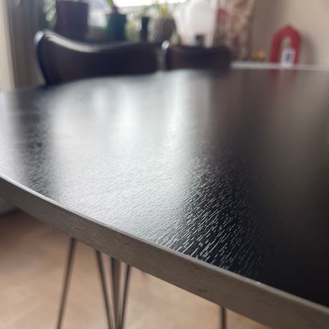 Fritz Hansen Bruno Mathsson matbord ellipsformad träskiva metallben
