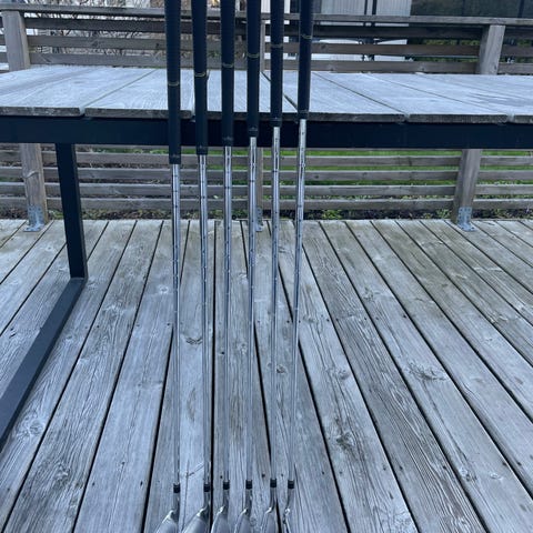 Taylormade M4 Dam järnset, S,P,9,8,7 och 6. Mycket sparsamt använd under en säsong 2025. Skaft Tuned Performance 45 flex L. (Nypris ca 6000,-)