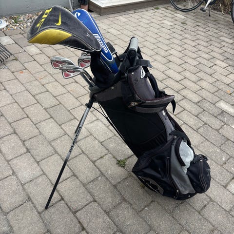 Bag, Driver, Spoon, tre järnklubbor och en putter.