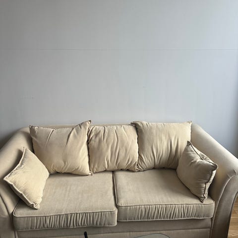 Säljer nu min svarta sammet soffa med guldiga ben. Soffan är använd men bra skick. Finns inga skador eller liknande vad jag kan se. Soffan är bekväm och stilren.