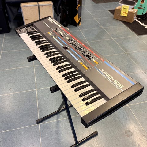 Det finns en väldigt liten skada (kommit åt med lödkolv?) på en tangent (se bild). I övrigt i bra skick!
