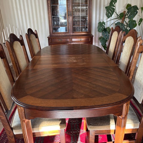 Säljer ett fantastiskt vackert antik/vintage matbord som jag köpte på auktion för 18 900 kr. Bordet har handsnickrade detaljer på benen och är utdragbart, vilket gör det perfekt både till vardag och större middagar.