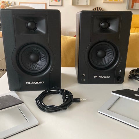 Små och extremt välspelande högtalare från världsberömda Genelec. Inkluderar GLM kit, Volymkontroll och smidiga bordsstativ i metall. Köptes till 5.1 som tyvärr aldrig blev verklighet. Endast provspelade och i absolut nyskick. Kan skickas med blocketpaket.