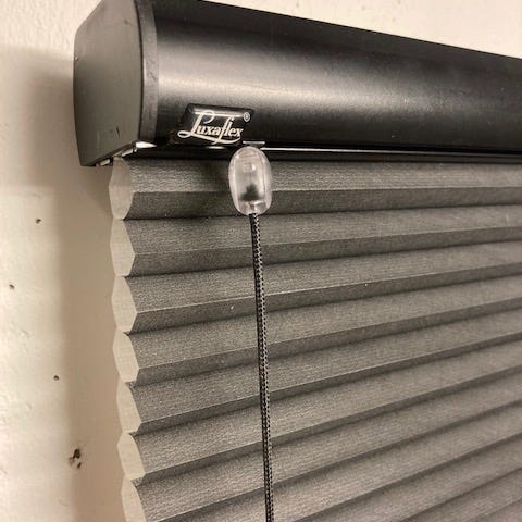 IKEA plisségardin i mörkgrå färg. Gardinen är vikbar med horisontella veck och monteras upptill i fönsterkarmen eller på väggen. Passar för insynsskydd och för att dämpa ljus i rum som vardagsrum, sovrum eller kök. Materialet är textil med plisserad struktur och gardinen kan höjas och sänkas med handtag i nederkant.