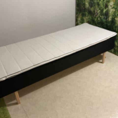 Säljer en svart resårbotten i använt men fräscht skick. Fast liggkomfort. Hund i hemmet. Finns och hämtas i Ås utanför Östersund. Betalning via Swish. 200kr