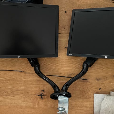 Skärmstativ med 3 24 tum skärmar, en acer, huawei, benq