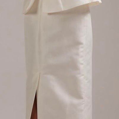 ASOS festklänning i satin för dam i storlek 38. Klänningen är grön och har en lång, rak kjol med lätt utsvängd nederdel. Materialet är slätt satin som ger ett mjukt fall. Passar till festliga tillfällen som bröllop, middagar eller andra högtider.