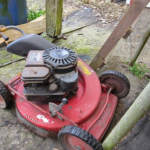 Klippo Compact 8 gräsklippare med bensinmotor Briggs & Stratton Quantum XLS 50. Gräsklipparen är röd med gult handtag och har ett robust stålchassi. Maskinen har handtag med reglage för drift och stopp samt medföljande röd uppsamlare. Passar för användning på mindre till medelstora gräsytor där man önskar en enkel, bensindriven klippare.