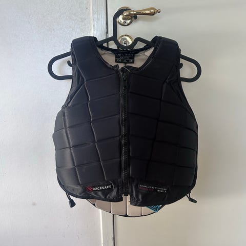 Racesafe säkerhetsväst i svart färg. Storlek L. Childs Large short/standard back.