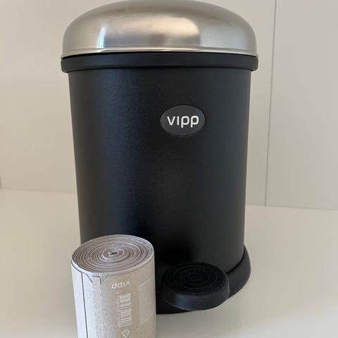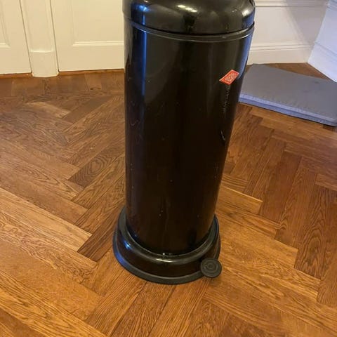 IKEA pedalhink i silverfärgad metall. Cylindrisk modell med fotpedal för öppning av locket. Passar för användning i kök, badrum eller andra utrymmen där en mindre avfallsbehållare behövs. Enkel att placera på golv och att tömma genom att lyfta av locket.