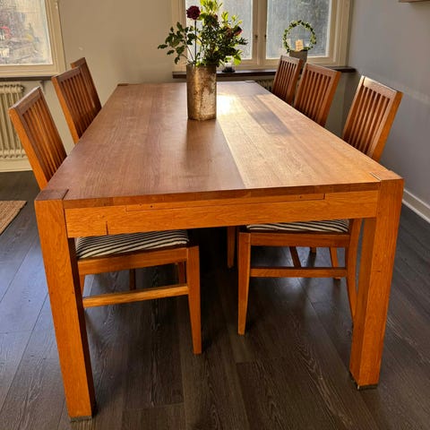 Matbord med 4 st iläggsskivor (60 cm per skiva)