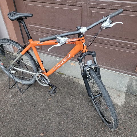 Cykeln är i bra bruksskick och redo att tas ut på stigen direkt. Det finns ett mindre glapp i dropper-stolpen (påverkar ej funktionen vid cykling) och en liten bump i bakfälgen, men inget som stör vid normal körning i skogen. Gaffeln är nyservad och fungerar utmärkt.