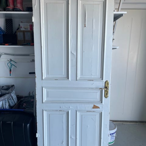Två Innerdörrar i vit färg. Dörren har förborrade hål för handtag och lås. Passar som innerdörr i bostad, exempelvis till sovrum, vardagsrum eller hall. Exakta mått och hängning kan kontrolleras vid intresse eller mätning på plats.