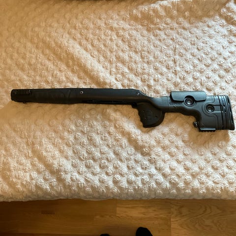 GRS sporterkolv för tikka M65. Färg är Nordik Wolf. Plastbäddad och klar. Slipad och oljad med trueoil. Fint skick! Nypris idag 8995:- sen tillkommer plastbäddning.