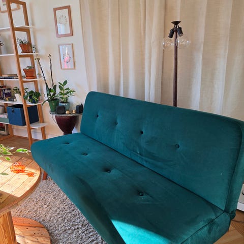 Petroleum (grön/blå) sammetsoffa från soffa direkt