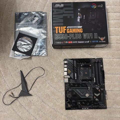 Säljer ett ASUS TUF GAMING B760-PLUS WIFI i ett mycket bra skick. Säljes komplett med samtliga tillbehör. Inköpt 2023 och har inte haft några problem alls.
