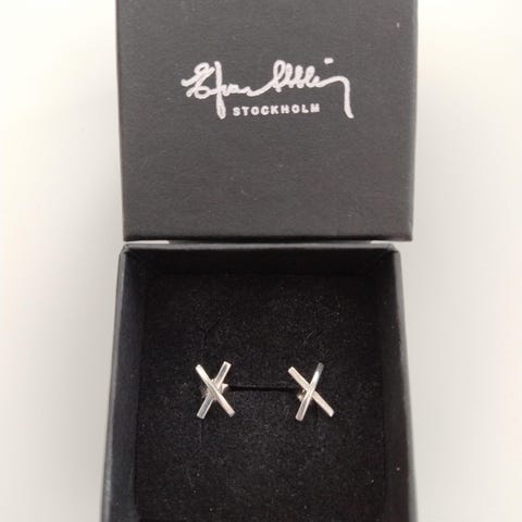 Dessa örhängen, i nyskick och utan märken eller fel, är en del av Efva Attlings "Twosome" kollektion, art. nr. 12-100-00526, med ett nypris på 2400:-