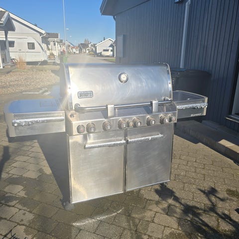 Weber gill 4 lågor och kok station i bra skick med överdrag .. 1 hjul har havererat annars fungerar allt