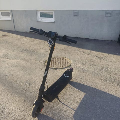 E-WHEELS E2S LR elsparkcykel i svart färg den åker u 20 km/h. Modellen är hopfällbar med styre som kan låsas i nedfällt läge för enklare transport och förvaring. Utrustad med framlykta, stänkskärmar och stöd. Passar för pendling och vardagsåkning. Den in åka 4,5 mil/45km
