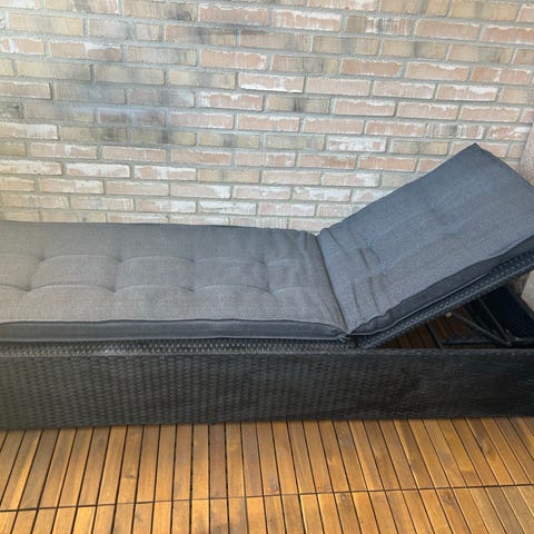 Rejäla tjocka dynor med sidokuddar, något solblekta