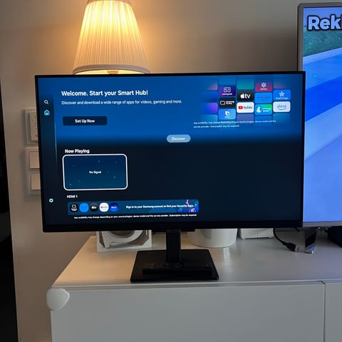 Skärmen har inbyggda smarta funktioner med appar och streamingtjänster direkt i monitorn.
