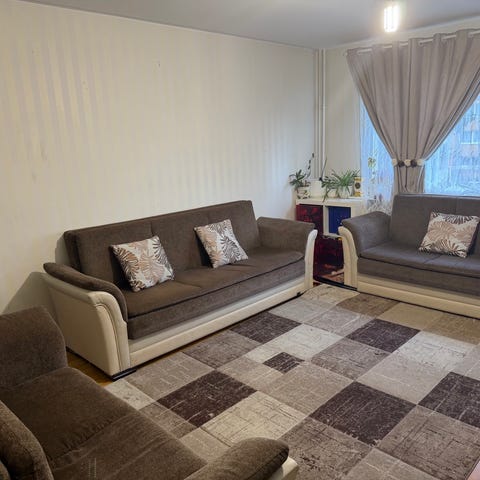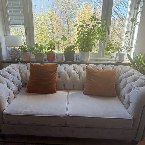 Soffgrupp, kuddar, Filltar och soffskydd medföljer.