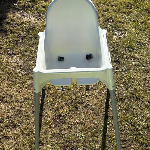 2st Ikea Antilop barnmatstol i plast med bricka. Lätt att torka av. Avtagbar bricka. Säkerhetsbälte saknas. 150kr/styck