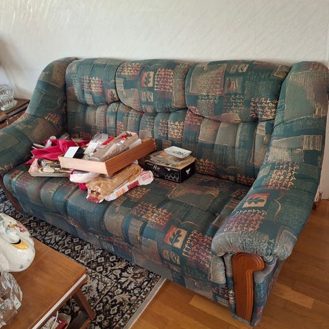 Säljer min 2 sits soffa. Soffan är i brunt tyg. Dynor ej avtagbara. Soffan är i ett enda stycke. Den är köpt från en möbelaffär i Dalarna för flera år sedan. Trots det är den i bra skick.