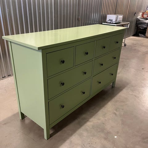 En fin gammal byrå i glada färger! Ommålad ett antal gånger, men fortfarande i gott skick! Lite repor i färgen på ovansidan, men inget som stör helhetsintrycket. Robust och bra i storlek. Lådorna glider bra.