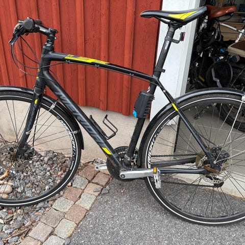 En vacker, väldesignad och snabb cykel i närmast nyskick, bra däck, drygt 4 år gammal, inköpskvitto finns, nyservad på Sportringen . Kompletterad med skärmar, lås, stöd, reflexer, pingla. En ägare (jag), körd ca 25 mil. Finns två mil norr om Enköping. Billigt tycker jag för de kvalitetskomponenterna och skicket. Inget för dig med artros i knäna som jag... funderar på en elcykel nu.