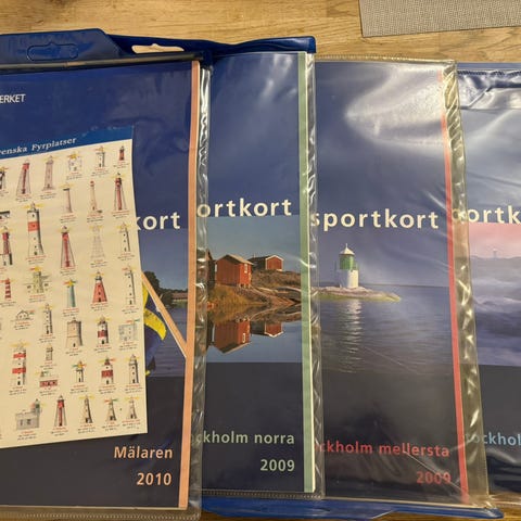Sjökort o hamn böcker från jorden runt segling.för mycket att lista här så bättre o ta via telefon. Skicka Tel nr så ringer jag upp . Mvh Lasse