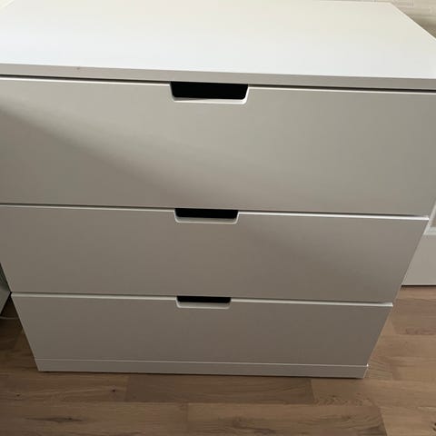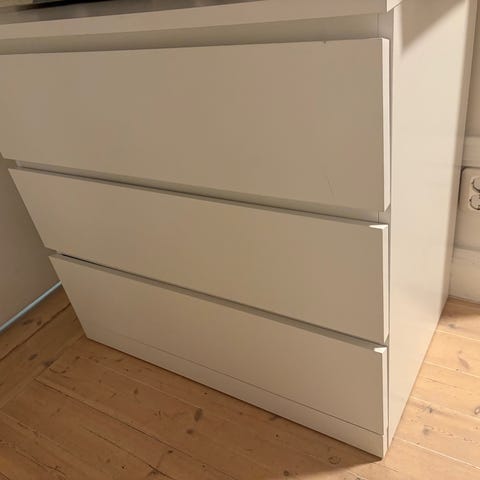 Synligt använd med en skada som syns på bild nummer 10, vilket är att en av ”listernas” mellan lådorna har gått av, den har även dålig botten i 2 av lådorna, så de kan ej lastas för tungt, alternativt att man fixar till botten, en av lådfronterna tycker jag även har lite annorlunda nyans än de andra.