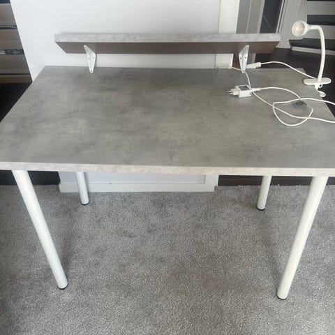 Skrivbord från IKEA säljes i helt ok skick. Tillhörande lådhurts.