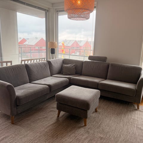 Bekväm soffa i okej skick. Dynan på divandelen är dock lite knölig. Inköpt på Mio 2014.