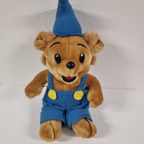 Vintage Nalle Puh med röd tröja. Rött band på huvudet för att hänga.
