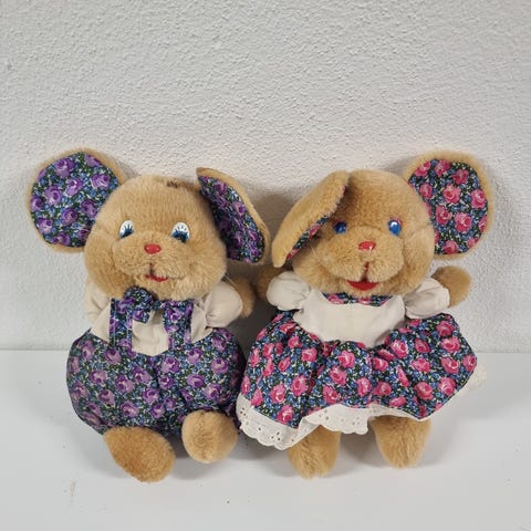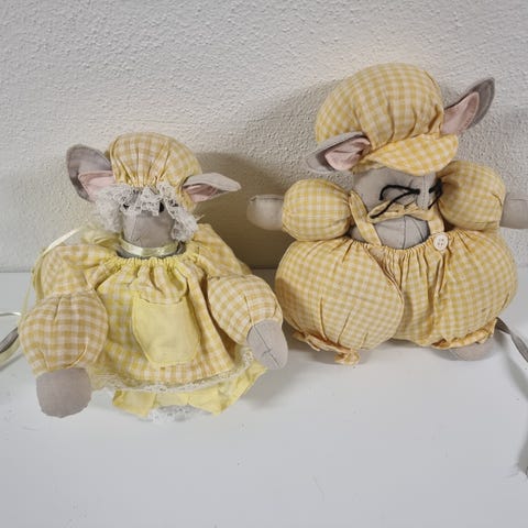 Vintage musmamma med vit och gul klänning och mössa. Bebisar i små fickor, går att ta ut.