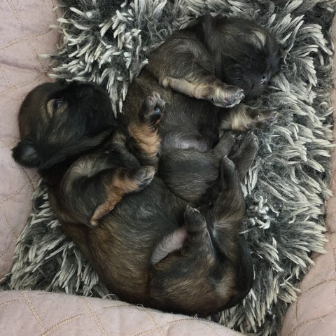 Då är de chippade, vaccinerade, avmaskade och besiktade. Båda föräldrarna är renrasiga med stamtavla I SKK och DWKC, valparna säljs utan stamtavla. Uppvuxna med barn och katter och andra hundar. Inga av föräldrarna har allergier eller andningsproblem. Bilder fås vid seriöst intresse.