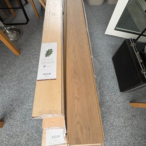Säljer fiskbensparkett ifrån Bjelin som blivit över. 3 st paket A-stavar och 3 st paket B-stavar. Nypris 849 :- kvadraten. Ca 2.6 kvadratmeter på 3 st paket. Pris nu 500 :- per paket. 3000:- för alla 6. Kan gå ner i pris vid snabb affär. Kan mötas upp i Göteborg om så önskas.