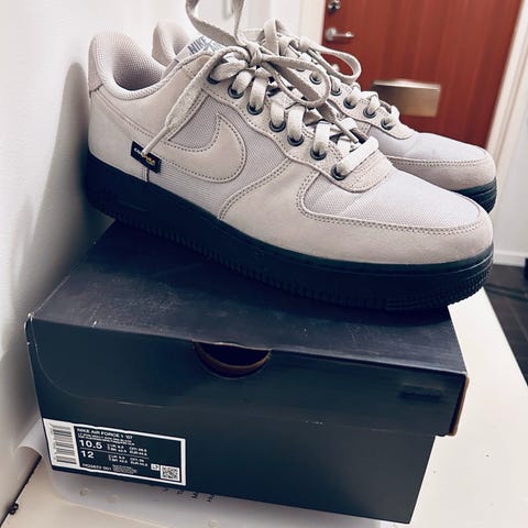 Ett par Nike Air Force 1 07 LV8 Reflective Swoosh. Använts max 2 gånger, annars legat i förvar. Sällsynt modell som ligger runt 3500kr-4000kr nypris.