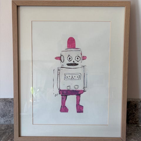 Jättefin tavla med vit ram till barnrum. Motiv av Stina Wirsén. Mått 31,5x31,5 cm