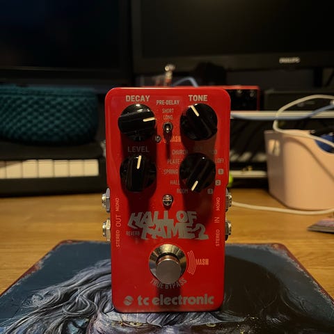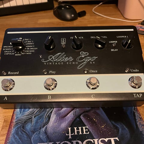TC Electronic Flashback delaypedal för elgitarr. Pedalen erbjuder flera olika delaylägen som kan ställas in via reglagen för bland annat delaytid, feedback och nivå. Hölje i blå metall med fotomkopplare på ovansidan. Anslutningar för in- och utgång på sidorna samt strömanslutning på ovansidan. Passar som gitarrtillbehör i pedalbord eller fristående användning.