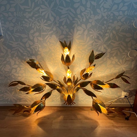 Vägglampan "Pioggia d'Oro" (italienska för "guldregn") är en ikonisk serie av vintagebelysning från 1960- och 70-talet, designad av Hans Kögl.