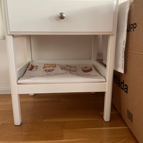 IKEA barnbord i vitt +fyra förvaringslådor på hjul och två lock enligt bild. Höjd 49cm djup 49cm bredd 90cm