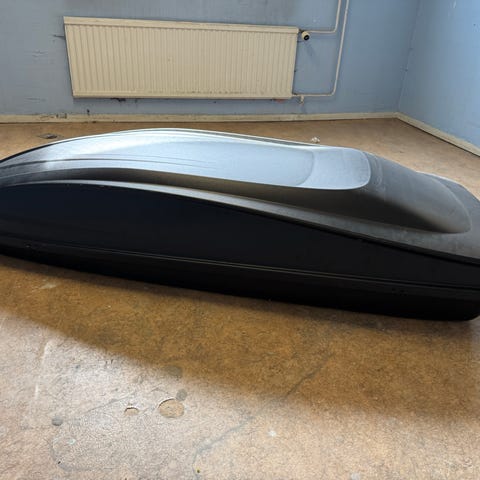 Säljer en rymlig takbox, Volvo Space Design 420. Den har en aerodynamisk utformning som minskar vindbrus och passar perfekt för både skidresan och sommarsemestern.