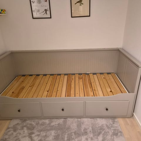 Från IKEA websidan: En soffa, enkelsäng, dubbelsäng och förvaring – i samma möbel! Perfekt om du bor på liten yta. Och om du gillar stilen kan du kombinera den här dagbädden med andra möbler från serien HEMNES.