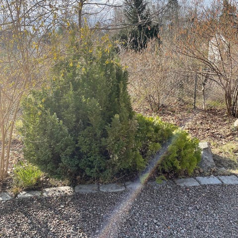 Dahlia-knölar som ger röda blommor. Knölarna planteras på våren när jorden blivit varm och kan användas i rabatter eller större krukor utomhus. Växten trivs i soligt läge med näringsrik och väldränerad jord. Knölarna grävs upp på hösten och förvaras frostfritt till nästa säsong. De har förökats under åren och jag har inte plats för alla.