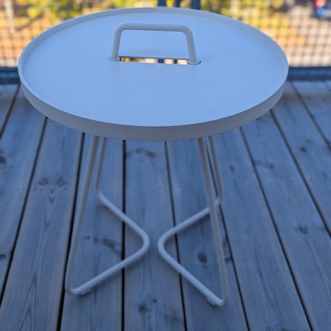 Grått sidobord, vet ej vart den är inköpt.
