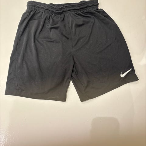 Nike Dri-Fit fotbollsträningsshorts för barn med storlek 147-158 cm i svart med flera logotryck. Shortsen är tillverkade i ett funktionsmaterial som transporterar bort fukt. De har resårmidja med vit dragsko för justerbar passform. Lämpliga för träning och andra sportaktiviteter. Kan skickas på post!😊